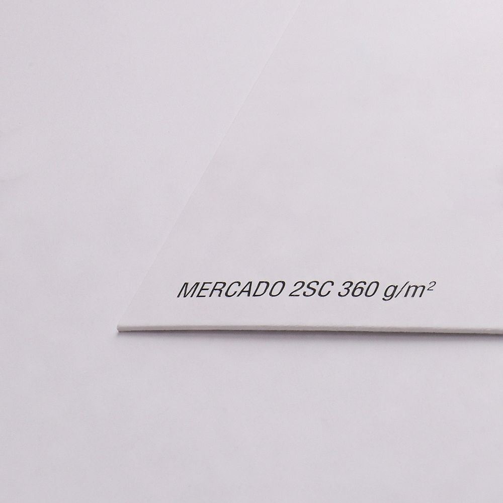 Mercado 2SC to dwustronnie bielony karton celulozowy, dwukrotnie powlekany. Posiada wyjątkowy poziom białości na jedwabistej, matowej powierzchni. Charakteryzuje się doskonałą obustronną drukownością.